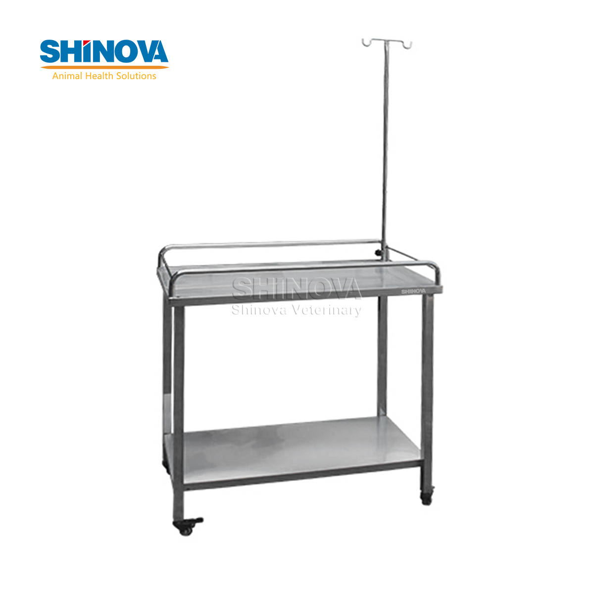 The table top is equipped with railings, and the movable infusion stand is convenient to use with brake wheel or adjusting foot.